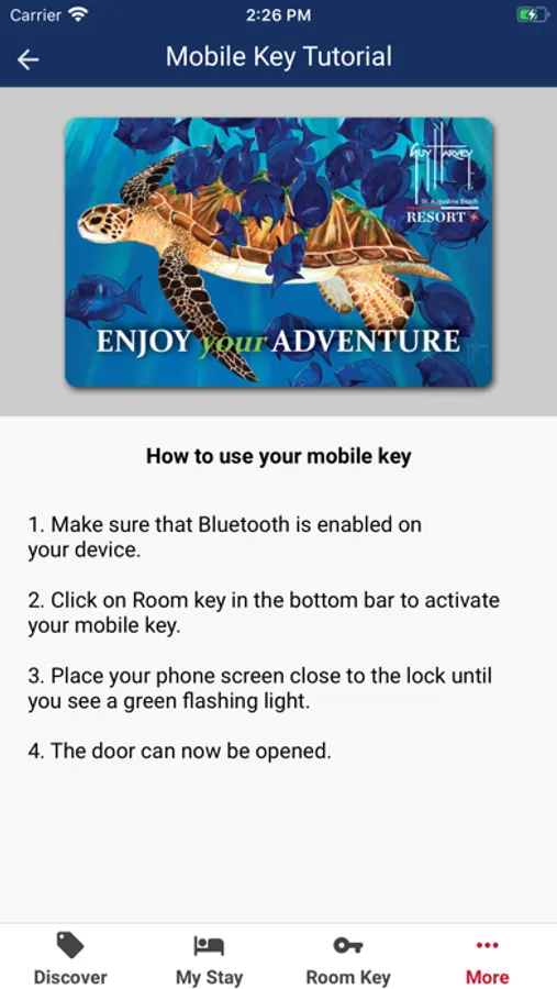Skip the front desk queue and get your room key in your mobile using Guy Harvey Resort's app.