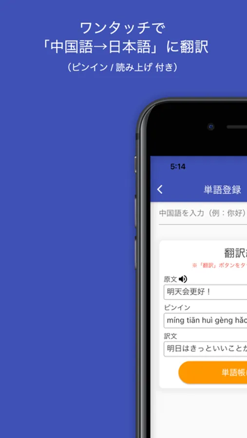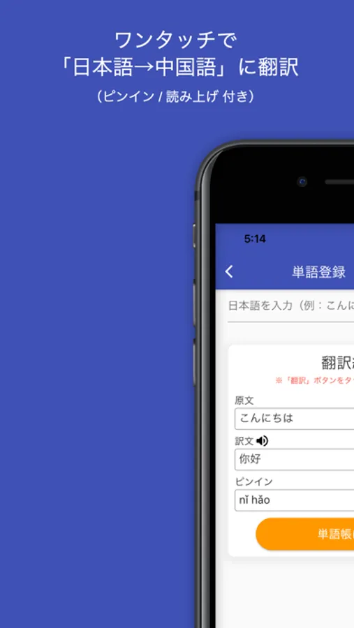 - 「日本語→中国語」への翻訳(ピンイン付き)