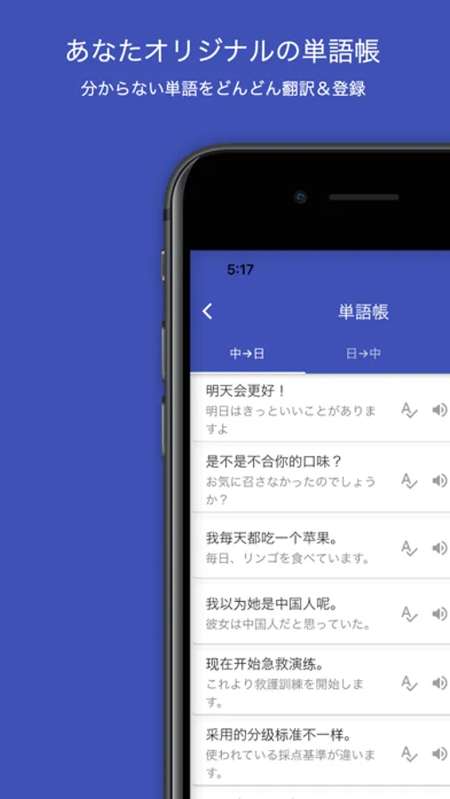 このアプリを使えば簡単操作で中国語⇄日本語の翻訳ができます。