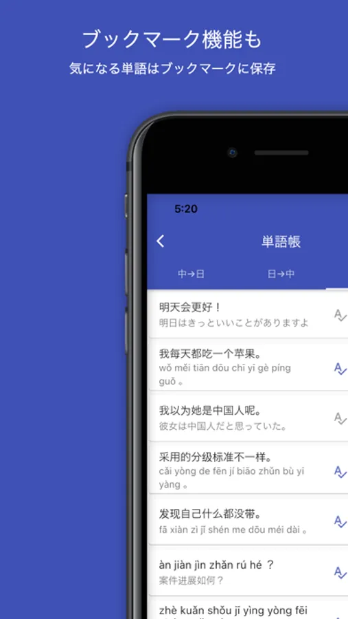 - 登録単語の一覧表示(ピンイン / 読み上げ / ブックマーク / 削除 機能付き)