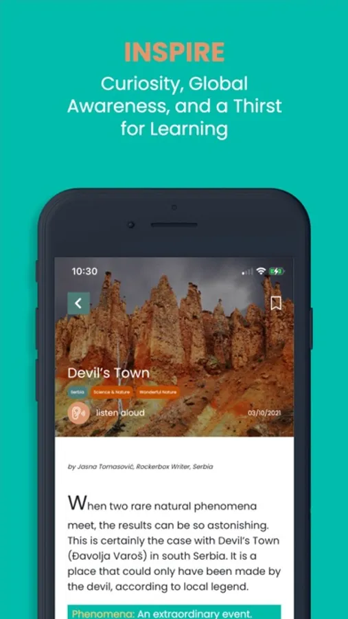Rockerbox News is an award-winning non-fiction reading platform for young people. New articles are published on Rockerbox News daily and every article is available at 5 different reading levels.