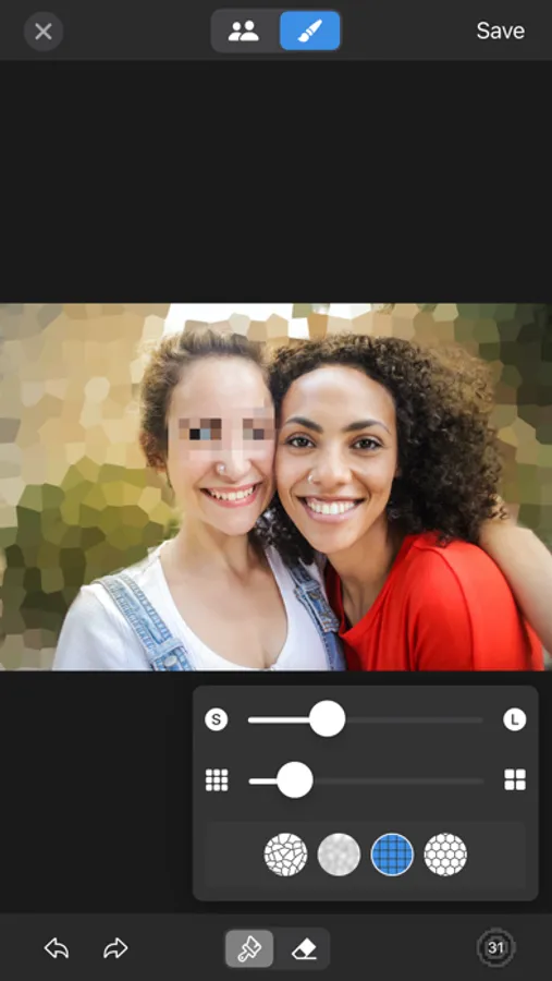 Easily blur other objects in pictures with the paint brush. Don't want the background to be visible? Use the paint function to hide it easily.