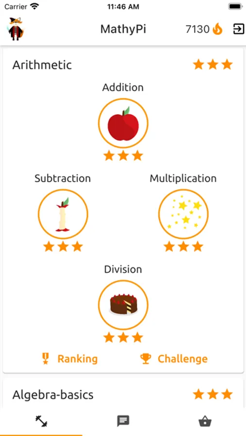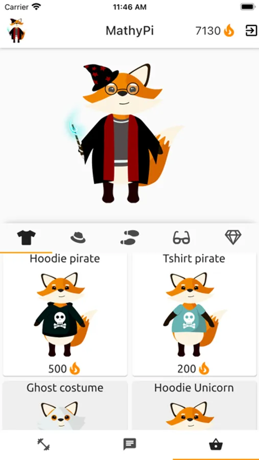 While doing your daily math sessions you are accompanied by the MathyPi fox. Earn points and acquire new outfits to individualize your MathyPi avatar. Chat with your friends and show them your avatar’s latest style.