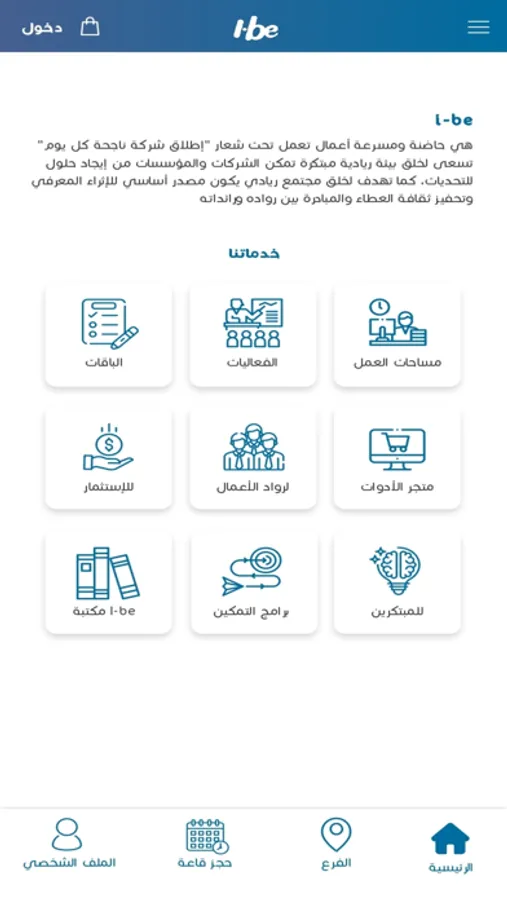 مركز ibe للابتكار وريادة الأعمال يعمل تحت شعار "إطلاق شركة ناجحة كل يوم" كما يسعى لخلق بيئة ريادية مبتكرة تمكن الشركات والمؤسسات من إيجاد حلول للتحديات، وخلق مجتمع ريادي يكون مصدر أساسي للإثراء المعرفي وتحفيز ثقافة العطاء والمبادرة بين رواده ورائداته.