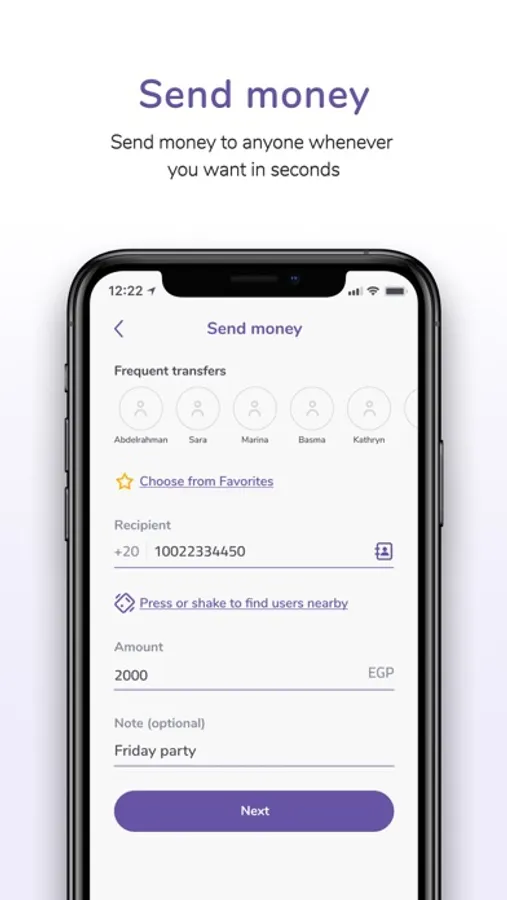 1- Send money “person to person” - you can send an amount of money to any wallet inside Egypt hassle-free.
