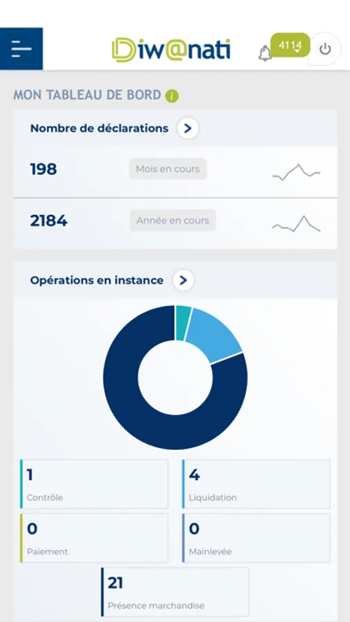 Diw@nati makes it possible to offer Customs end users the opportunity to get information about their customs operations and and monitor certain customs procedures remotely and to consult and download e-documents.