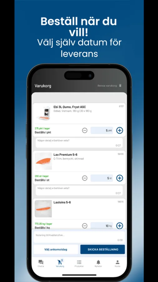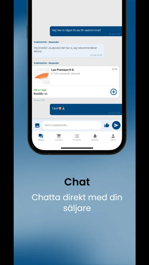 This is the app you as a restaurant and customer of Kvalitetsfisk want to use to order, chat, get news and plan your purchases