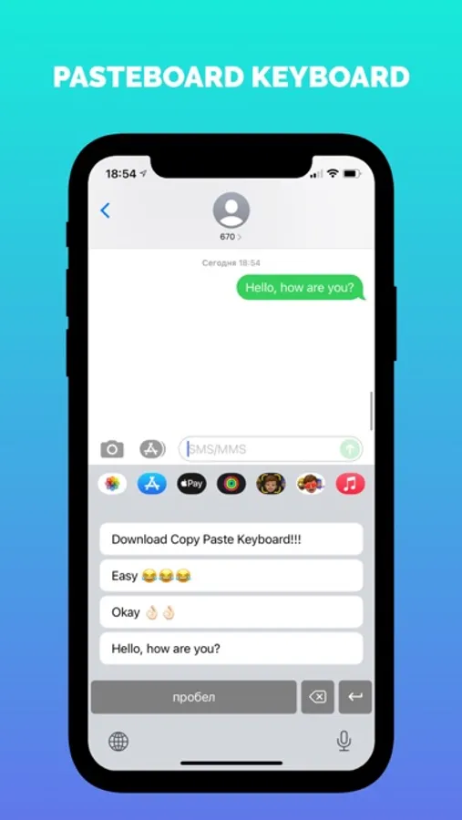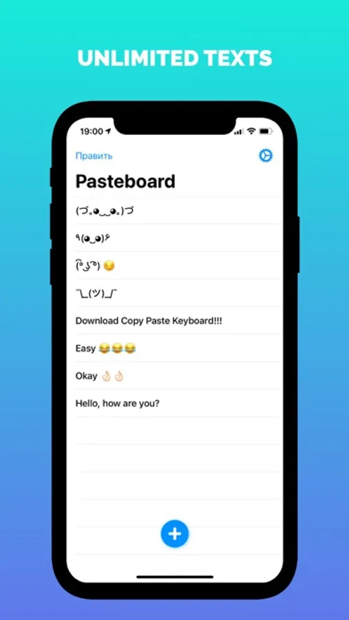 Pasteboard Keyboard is easy to use keyboard. App allow user save any text (emojis) and it on keyboard.