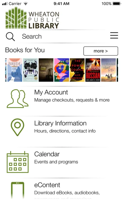 Access Wheaton Public Library from your iPhone, iPad or iPod Touch. Manage your account, search the catalog, request material, download ebooks and register for events.