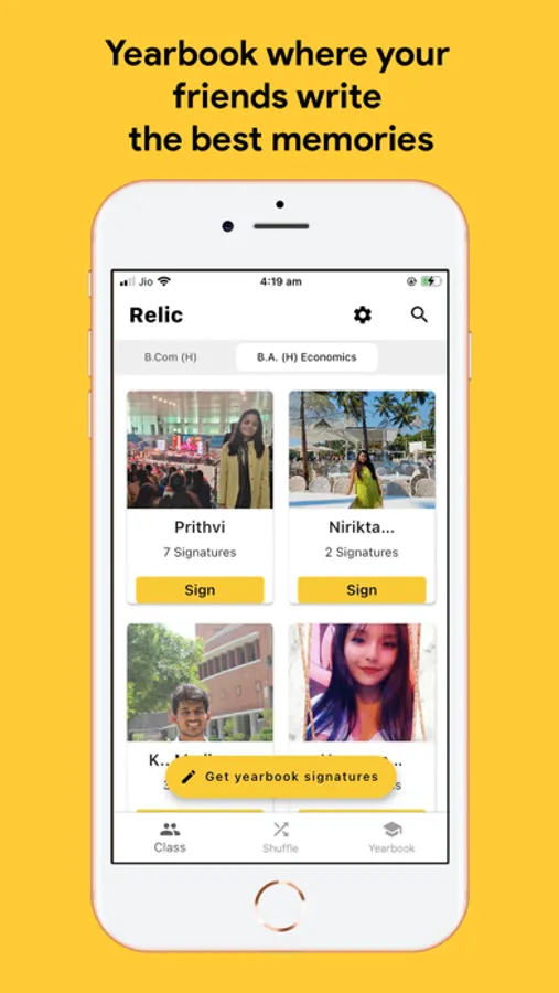 1. Capture all of your college memories. Remember scribble day, where you used to sign each other t-shirts, Relic app is the same but as a yearbook!