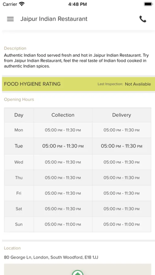 Thank you for visiting Jaipur Indian Restaurant in South Woodford. We hope you enjoy our online ordering app and your food.