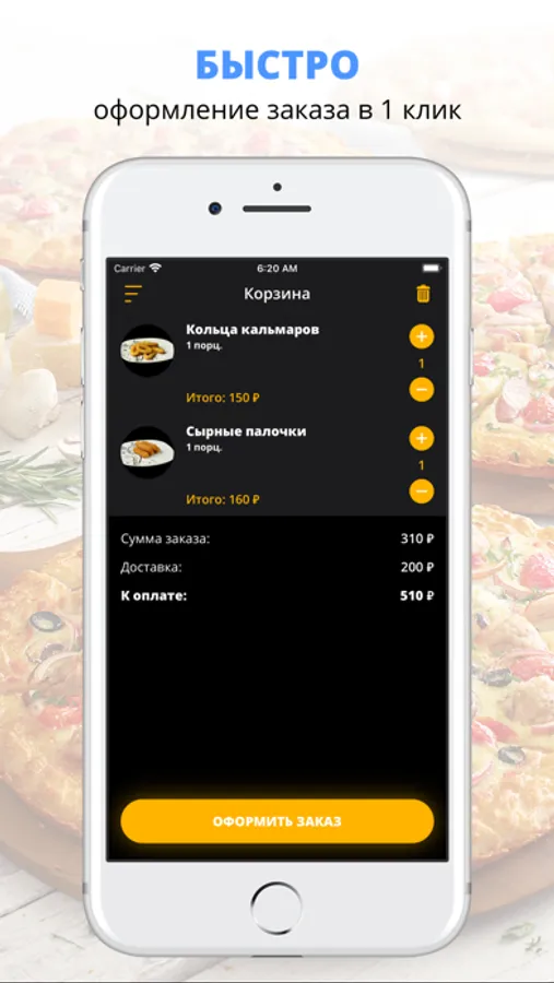 Скачивайте наше приложение, оформляйте заказ и наслаждайтесь любимой едой, где бы Вы ни были! Приятного аппетита!