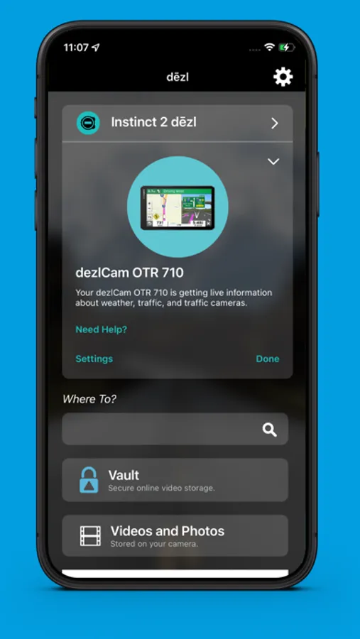 The dēzl app on your smartphone pairs with a compatible Garmin truck navigator or dēzl™ Edition smartwatch to access features designed to enhance your over-the-road lifestyle.