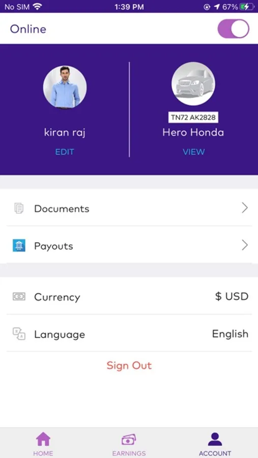 Driver online/offline status