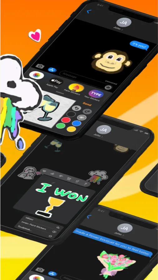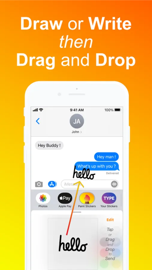 If you want to add a sticker, touch and hold the sticker and then drag it to the message bubble. The sticker will automatically be sent after you've added it to the message. You can also pinch or zoom to resize stickers before sending.