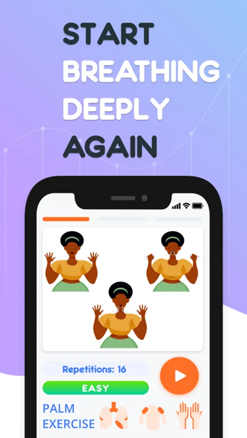 Lungs Saver is a set of simple steps to restore the respiratory system. We provide a complex of nine breathing exercises of various difficulty levels. Every exercise includes detailed guidance, static and interactive tutorials to help you do the exercises correctly. Our app lets you regulate the number of repetitions and the duration of exercises depending on the chosen level of training. Lung Saver ensures comprehensive understanding of the types of muscle groups involved in each exercise. The application can be used as a tool to restore the respiratory system or to maintain body tone.