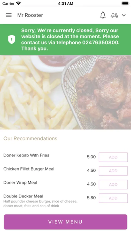 Order food online in Nuneaton! It's so easy to use, fast and convenient. Try our new, online App which contains our entire takeaway menu. The Mr Rooster is located in Nuneaton.