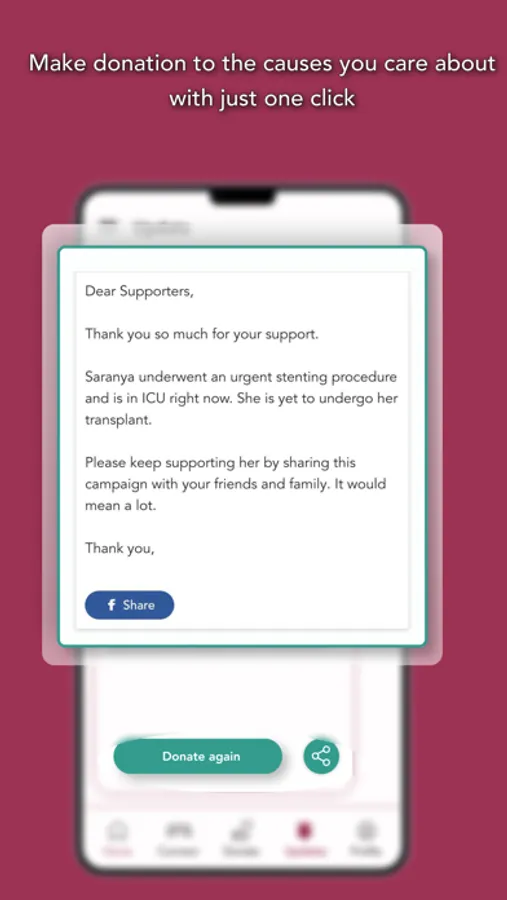 Connect directly with those you have helped; support the cause and help them reach their goal faster by sharing the cause. Send your best wishes, your queries, and also, send them personalised e-cards as a word of support.