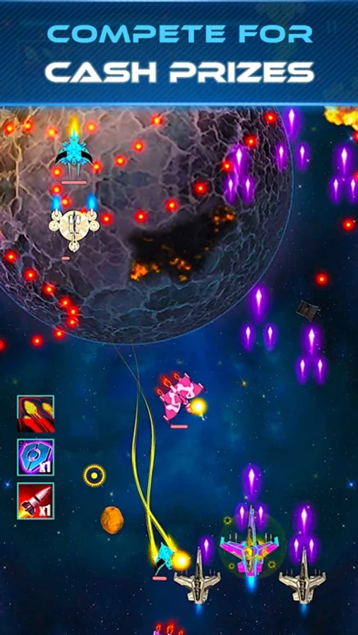 - Perfect shmup, shoot ‘em up action: choose your fighter ship to beat your opponents!