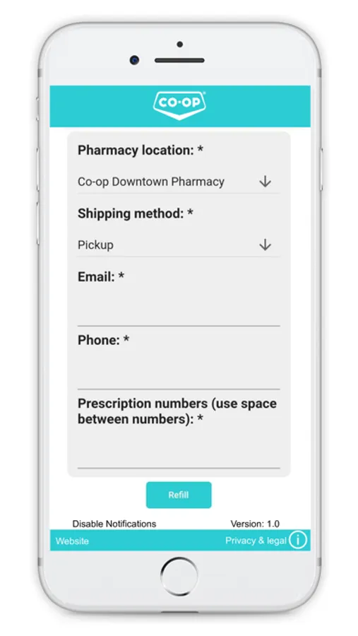 prescription profile. Refill your prescriptions quickly and easily from just about anywhere. Receive pick-up reminders from your local Co-op Pharmacy the moment your prescriptions are ready. The Co-op