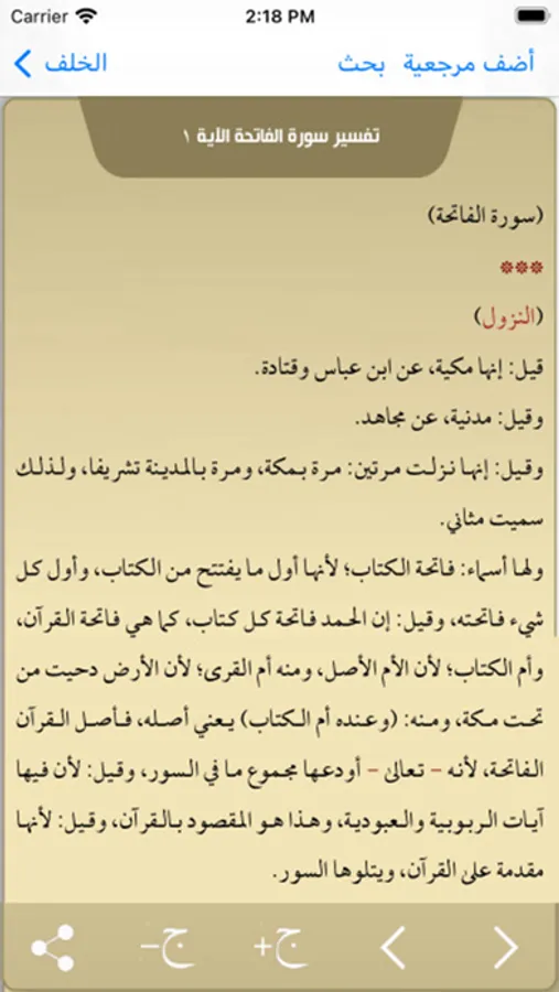 4-ميزة تكبير وتصغير الخط في التفسير .