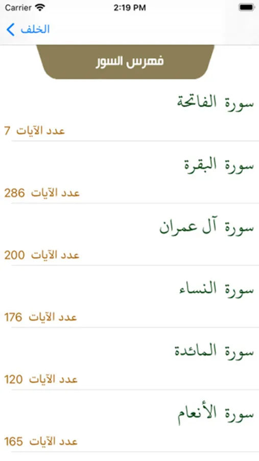 5-التصفح بين تفسير الآيات عبر إزاحة الشاشة يمينا ويسارا أو من خلال أزرار التنقل.