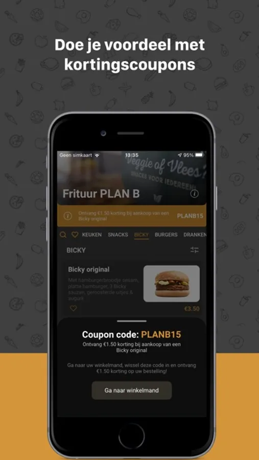 Download de Frituur Plan B app en bestel online.