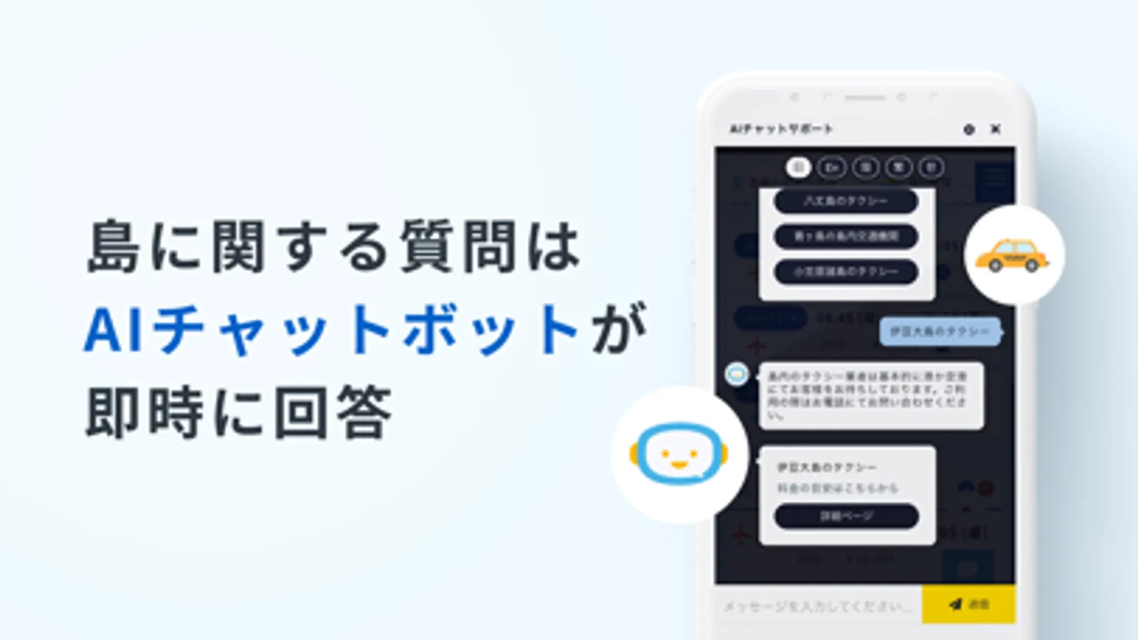 島のことや交通手段に関する疑問に、AIチャットボットがいつでも回答します。