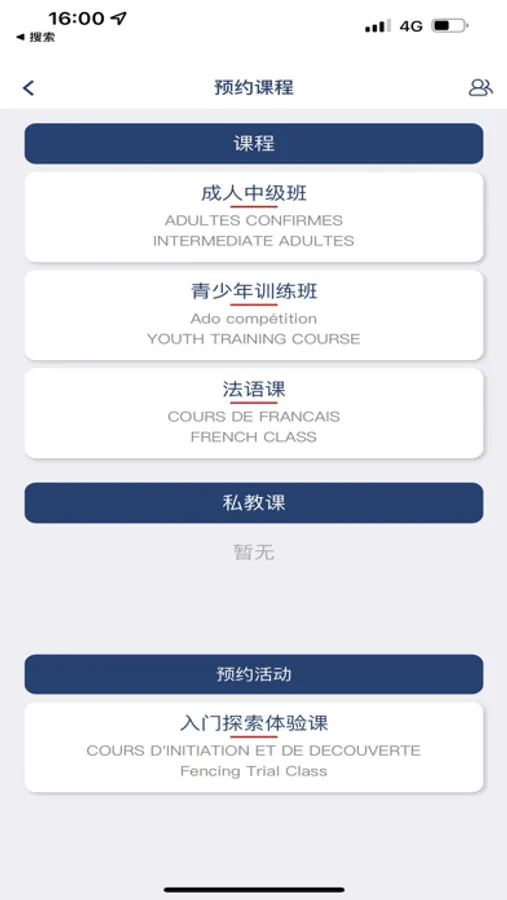 本app提供 击剑教学、击剑裁判语及法国文化语言训练、专业体能训练、中法文化交流系列讲座。