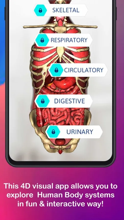 Anatomy AR 4D app is for science teachers, medical students and anyone who needs to explore Human anatomy in detail, which allows you to view depth look of the human body and you can also rotate 360°, Zoom and move camera around a highly realistic 3D model.