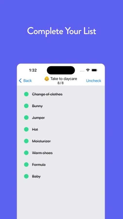 You live in an overwhelming world, with new information constantly bombarded at you. Simple tasks like remembering what to take when you leave the house often feel overwhelming. We need to offload this cognitive function and be confident we do and take everything we need. Traditional to-do list apps are overwhelming, they make it difficult to surface lists when you need them. Apps that focus on repeatable lists are often focused on streaks and habits.