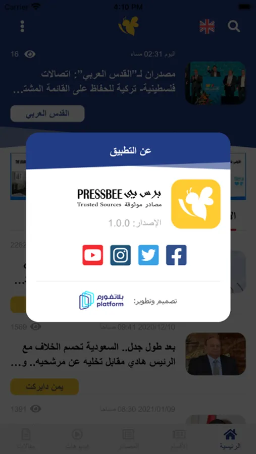 تطبيق برس بي عن قارئ أخباري لعرض آخر تطورات الأحداث في الساحة العربية و العالمية من مصادر موثوقة , أمثال صحيفة اليوم السابع المصرية و غيرها , لها تاريخها في الساحة الإعلامية . و لها نسبة متابعين بالملايين .