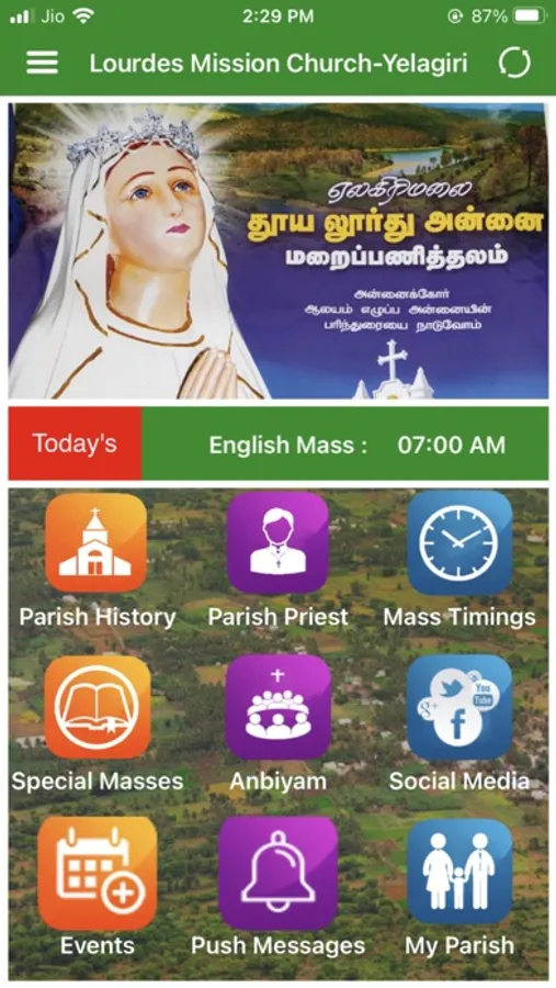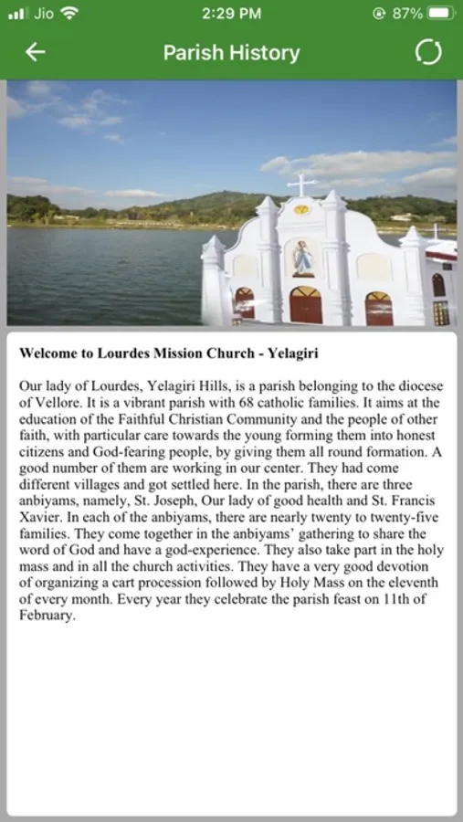 Our lady of Lourdes, Yelagiri Hills, is a parish belonging to the diocese of Vellore. It is a vibrant parish with 68 catholic families. It aims at the education of the Faithful Christian Community and the people of other faith, with particular care towards the young forming them into honest citizens and God-fearing people, by giving them all round formation. A good number of them are working in our center. They had come different villages and got settled here. In the parish, there are three anbiyams, namely, St. Joseph, Our lady of good health and St. Francis Xavier. In each of the anbiyams, there are nearly twenty to twenty-five families. They come together in the anbiyams’ gathering to share the word of God and have a god-experience. They also take part in the holy mass and in all the church activities. They have a very good devotion of organizing a cart procession followed by Holy Mass on the eleventh of every month. Every year they celebrate the parish feast on 11th of February.