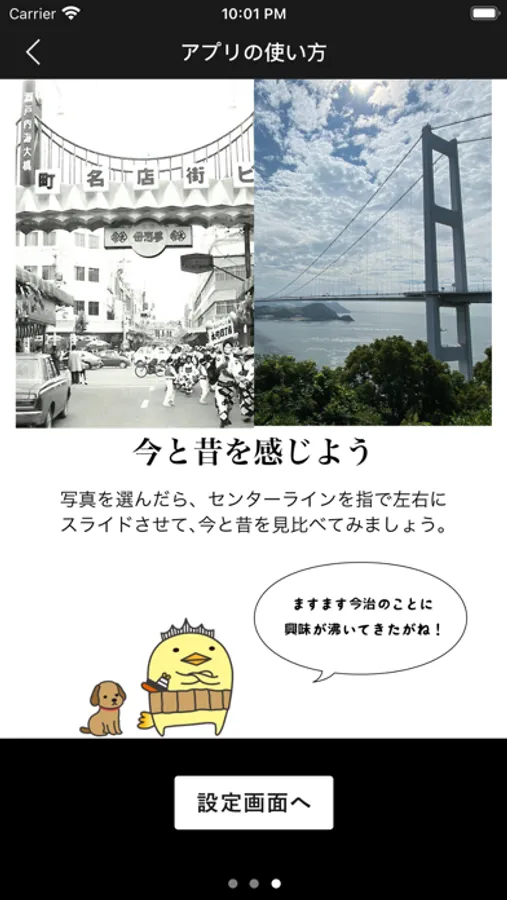 今治今昔写真アプリは、地域のコミュニティから寄せられた今治の「今」と「昔」の写真を多くの方に楽しんでいただけるよう、広く発信するモバイルアプリです。