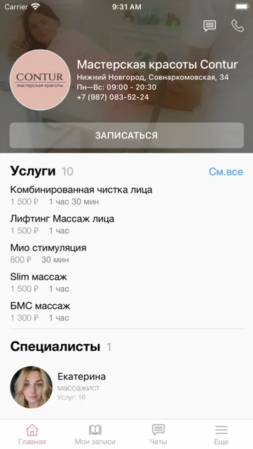 Официальное мобильное приложение Мастерской Красоты Contur.