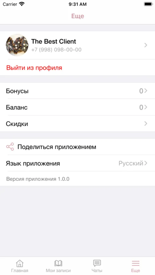 - смотреть историю своих посещений и узнавать первыми обо всех акциях и новинках нашего салона.