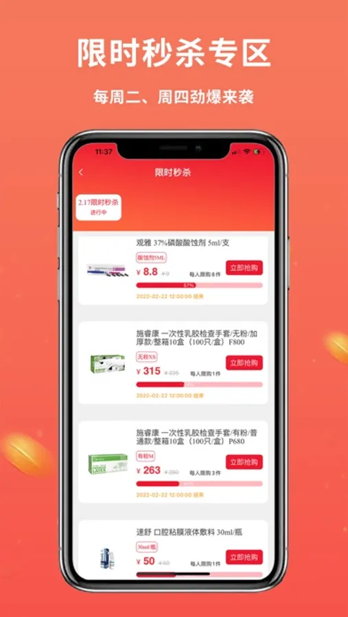 >限时秒杀:每周二、周四优惠产品秒不停