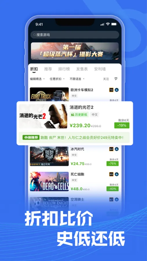 2【折扣比价 史低还低】超过3个国区的折扣价格对比,详细的游戏信息和玩家真实反馈评价,发售表和安利墙让你想错过任何一款优质大作都难。