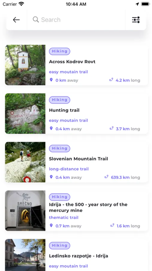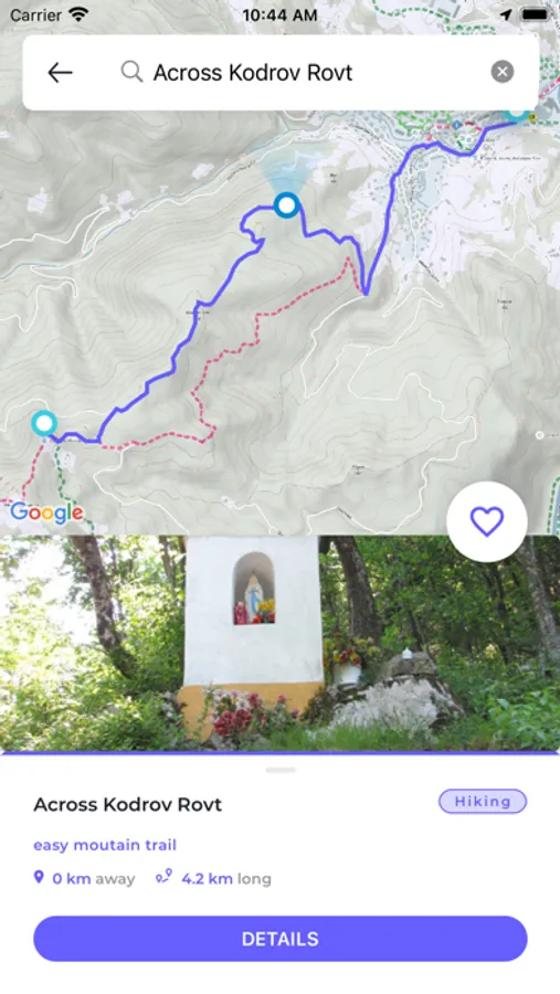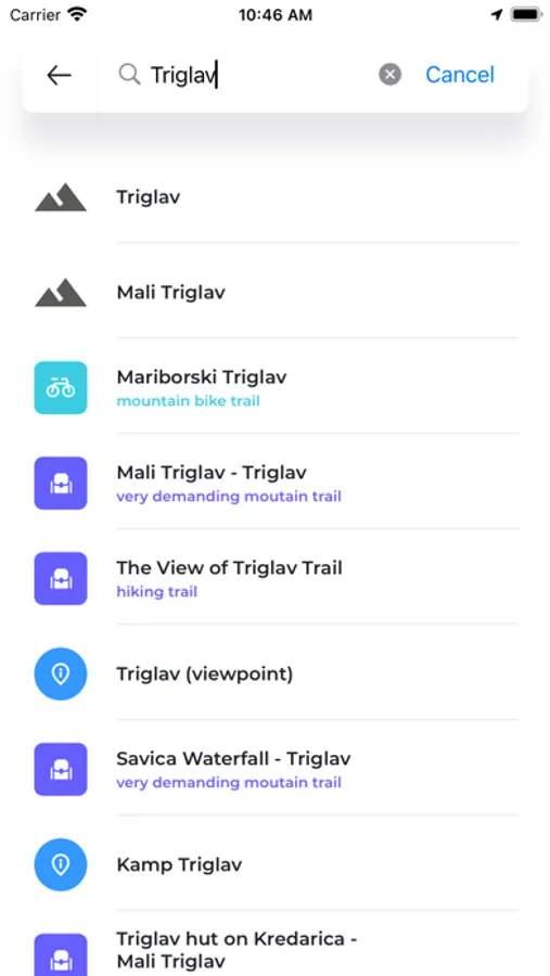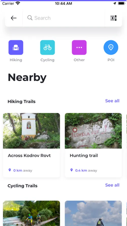 - The app shows trails around your current location by default but you can also easily search for trails in a specific region, around a city, address, and trails leading to a selected mountain peak,