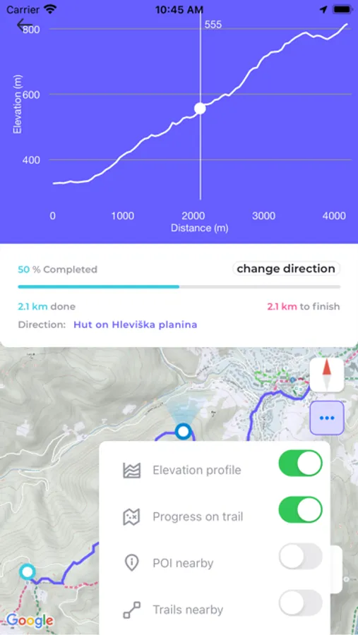 - You can check your current status on the trail with the exact elevation level and position along the trail,