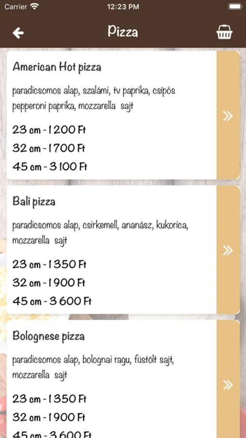 A Pizza Café Budapest XI. kerületében készíti finom pizzáit 23cm-es, 32cm-es, 45cm-es méretben. Étlapunkon szerepelnek még hamburgerek, tortillák, levesek, frissensültek, vega ételek, készétel, grill ételek, halételek, köretek, bőségtálak, tészták, saláták, savanyúságok, öntetek, desszertek és üdítők. Ha megéheztél, itt a helyed!