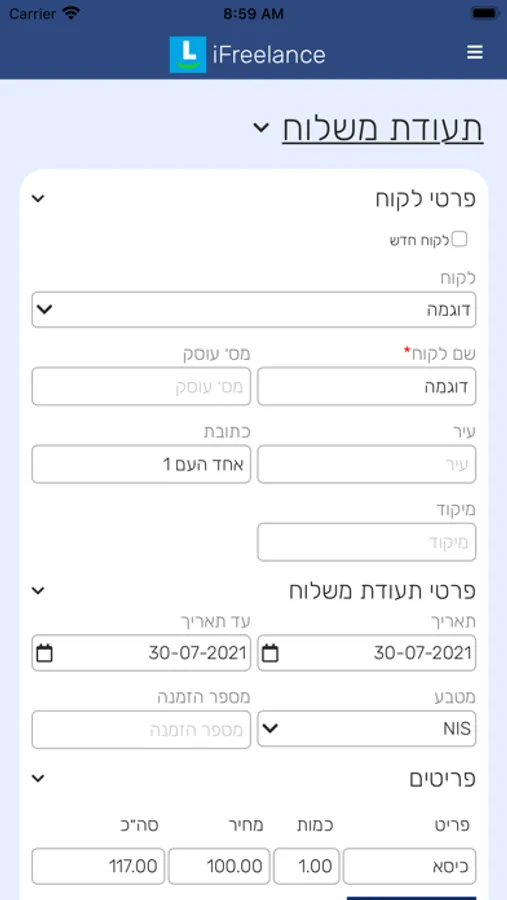 אפליקציית פרילאנס מאפשרת לכם לבצע את רוב פעולות הנהלת החשבונות שלכם מהטלפון הנייד.
