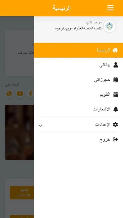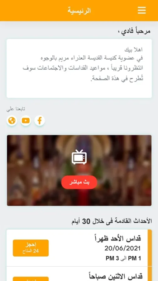 - حجز القدسات ، الرحلات ، مدارس الاحد، دروس الكتاب، المناسبات الروحية والاجتماعية