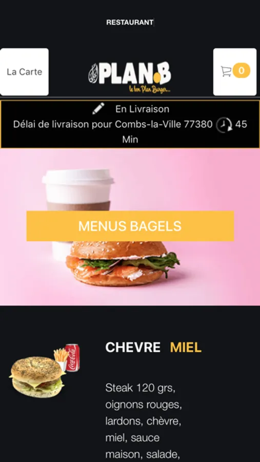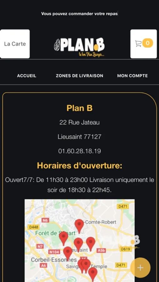 L'application Plan B vous permet de commander en ligne ou par téléphone via votre application. Vous pouvez consulter notre carte et choisir vos produits.