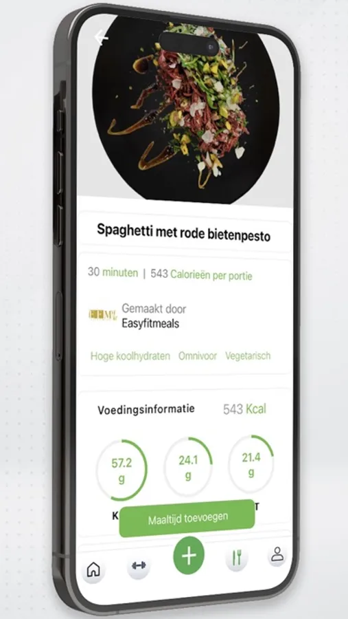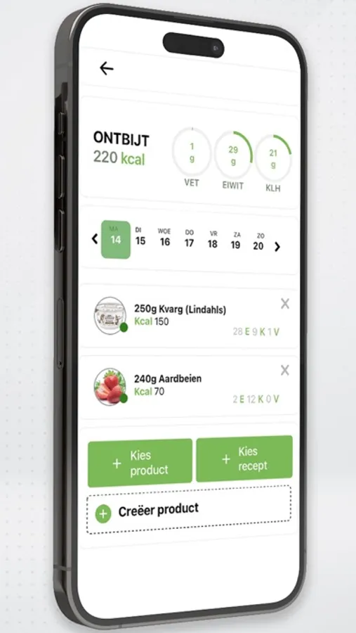 -Een dagboek waarin je recepten, voedingsmiddelen en eigen maaltijden kan toevoegen.