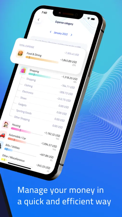 Monitor your accounts at a glance through an easy to read display and have your transactions automatically categorized to understand your spending habits and pulse check your status in real-time