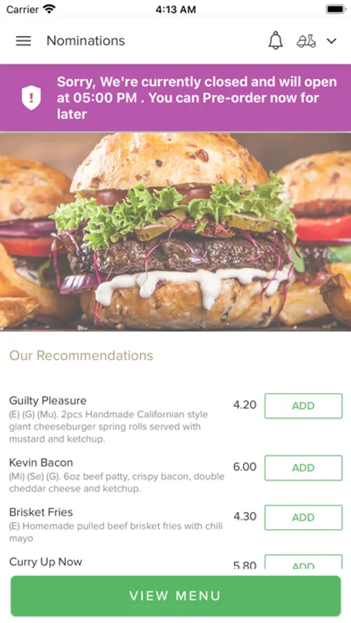 Always the freshest ingredients At Nominations we cook fresh food with high quality ingredients, even making our own handmade burgers on site. Because we believe that you shouldn’t have to pay premium prices for great quality.