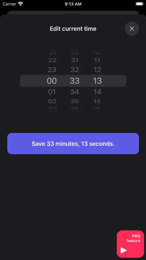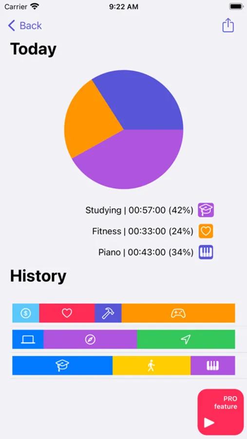 The PRO version includes customization of your timers, editing of tracked times & access and export of your statistics.