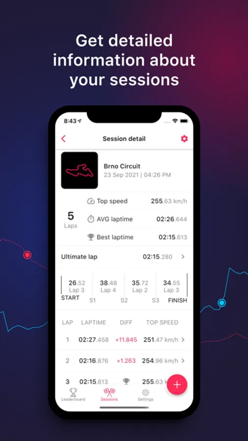 - Easy access to each session and each lap. This way you can always refer back to a particular lap.
