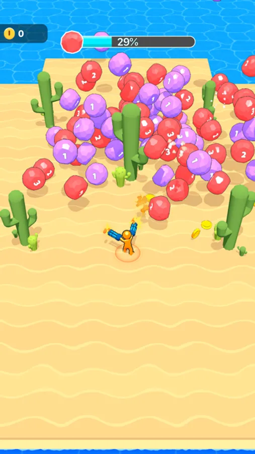 Survive to the arena by avoiding the evil balls and shoot them!